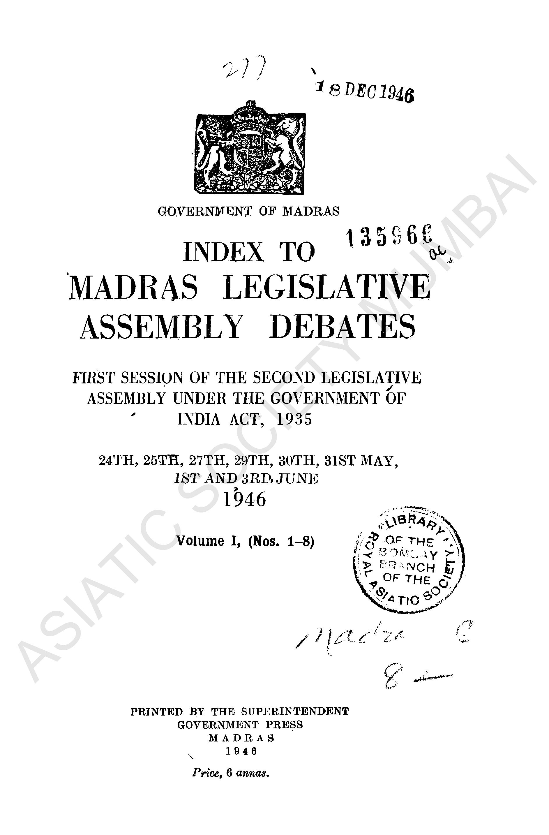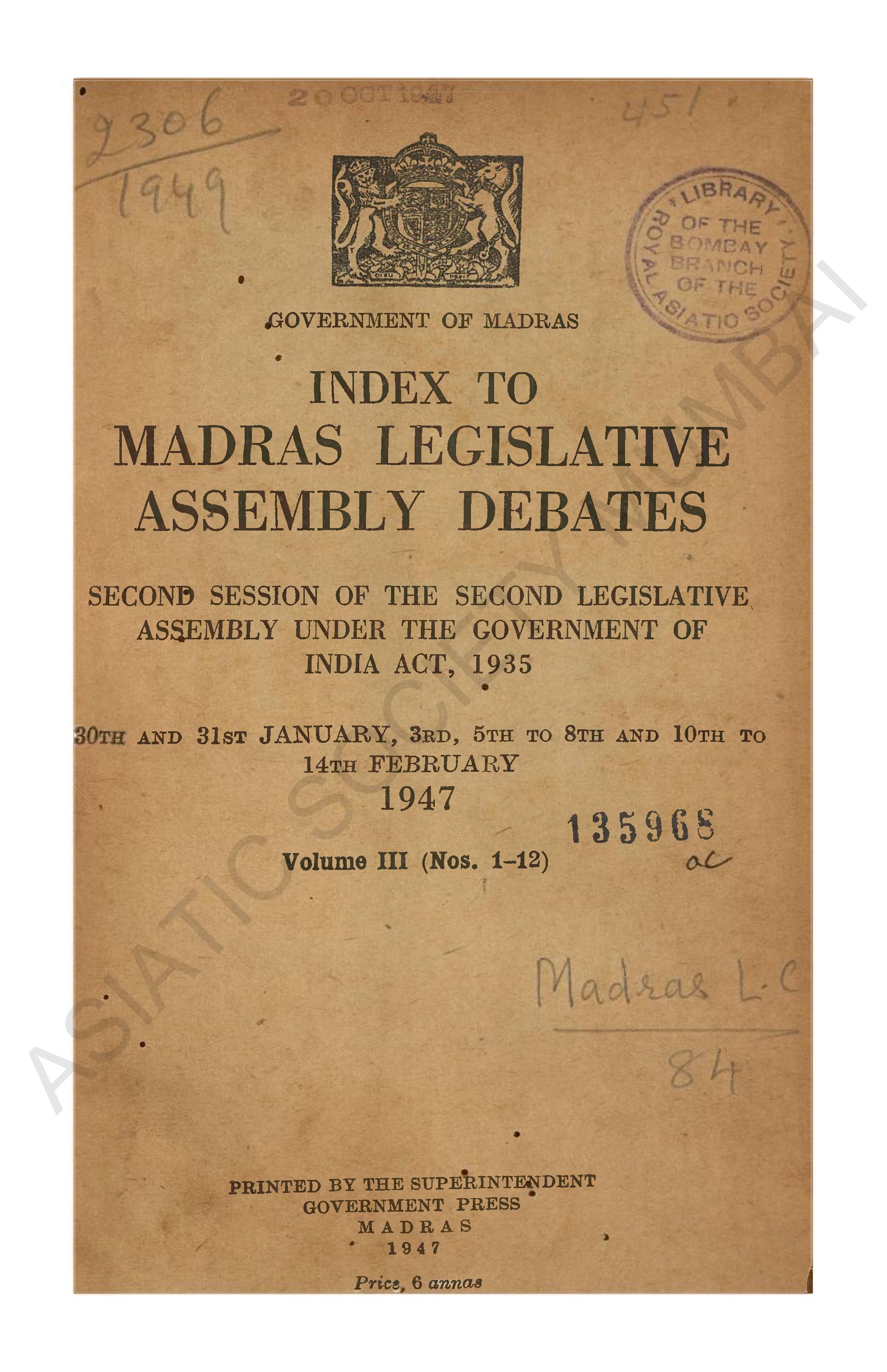 | Subject | : | India--Tamil Nadu; Politics and government; Tamil Nadu (India). Legislature. Legislative Assembly |