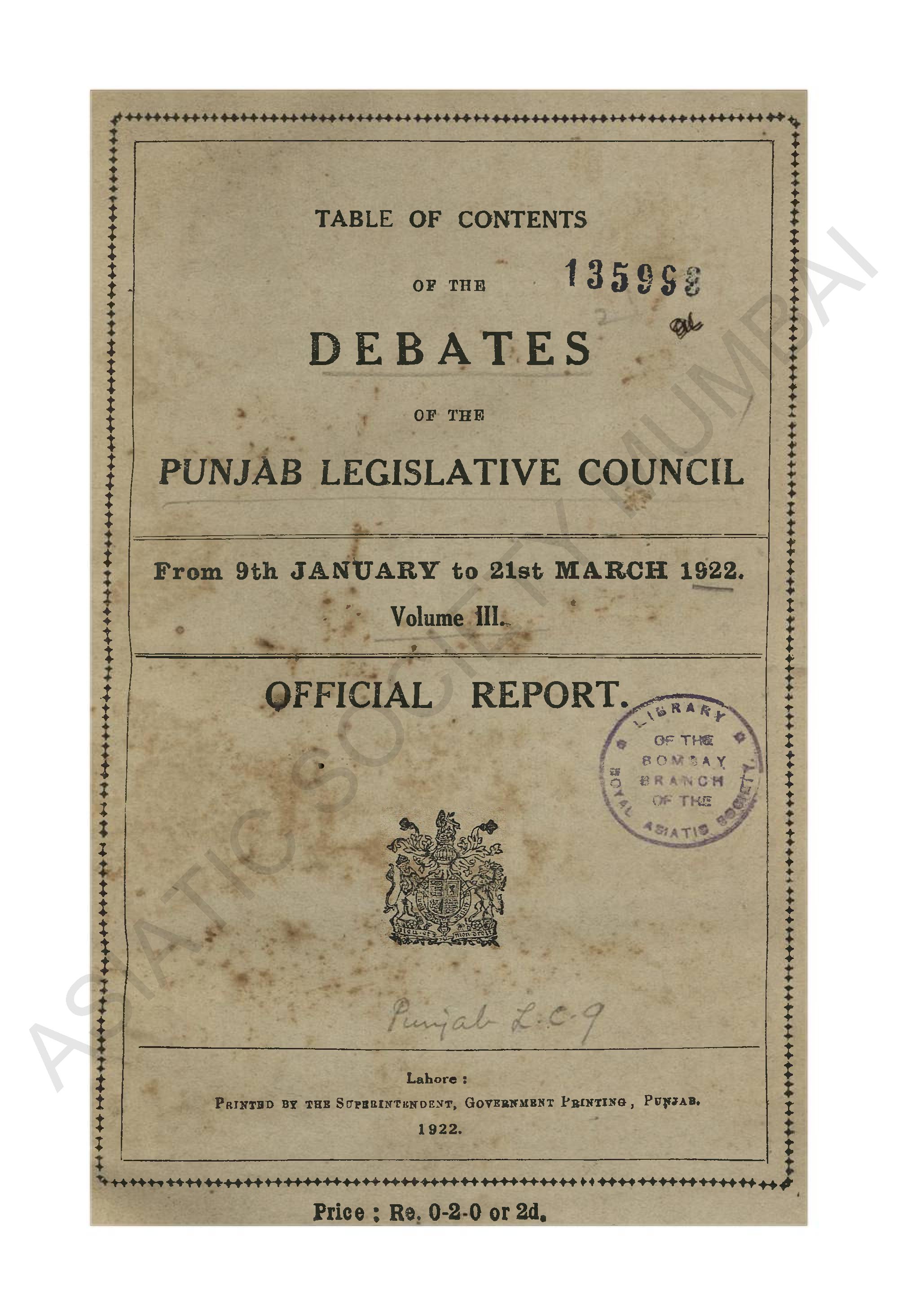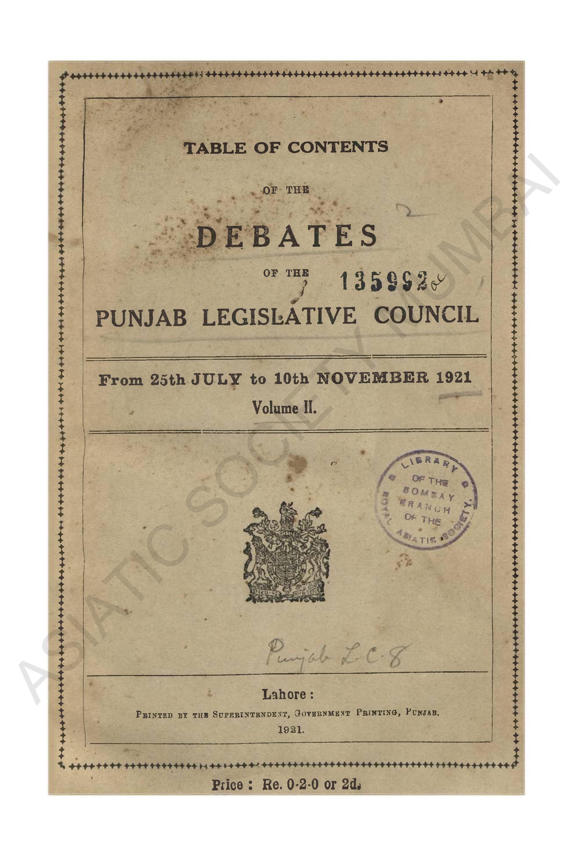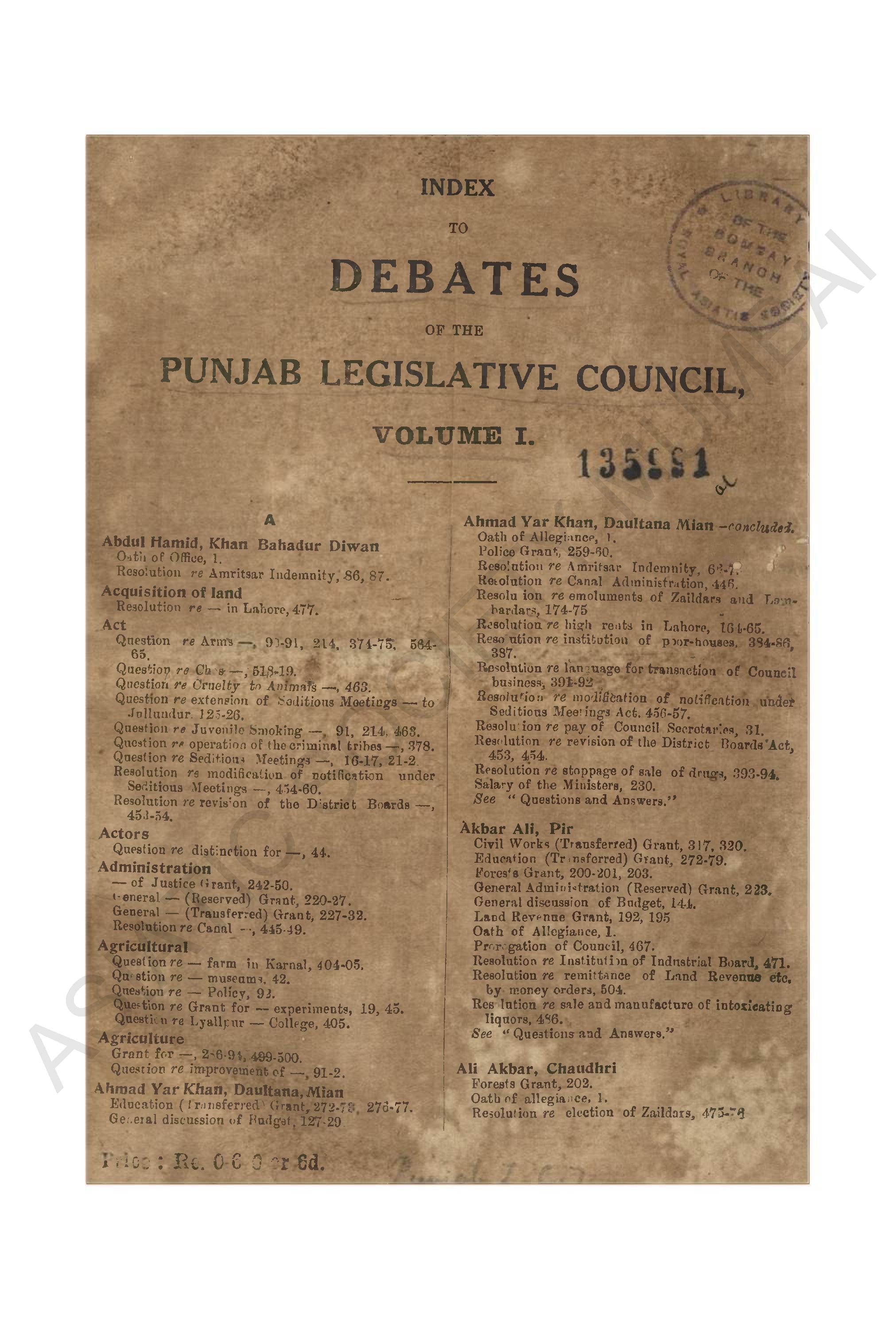 | Subject | : | India--Punjab; Politics and government; Punjab (India). Legislature. Legislative Council |