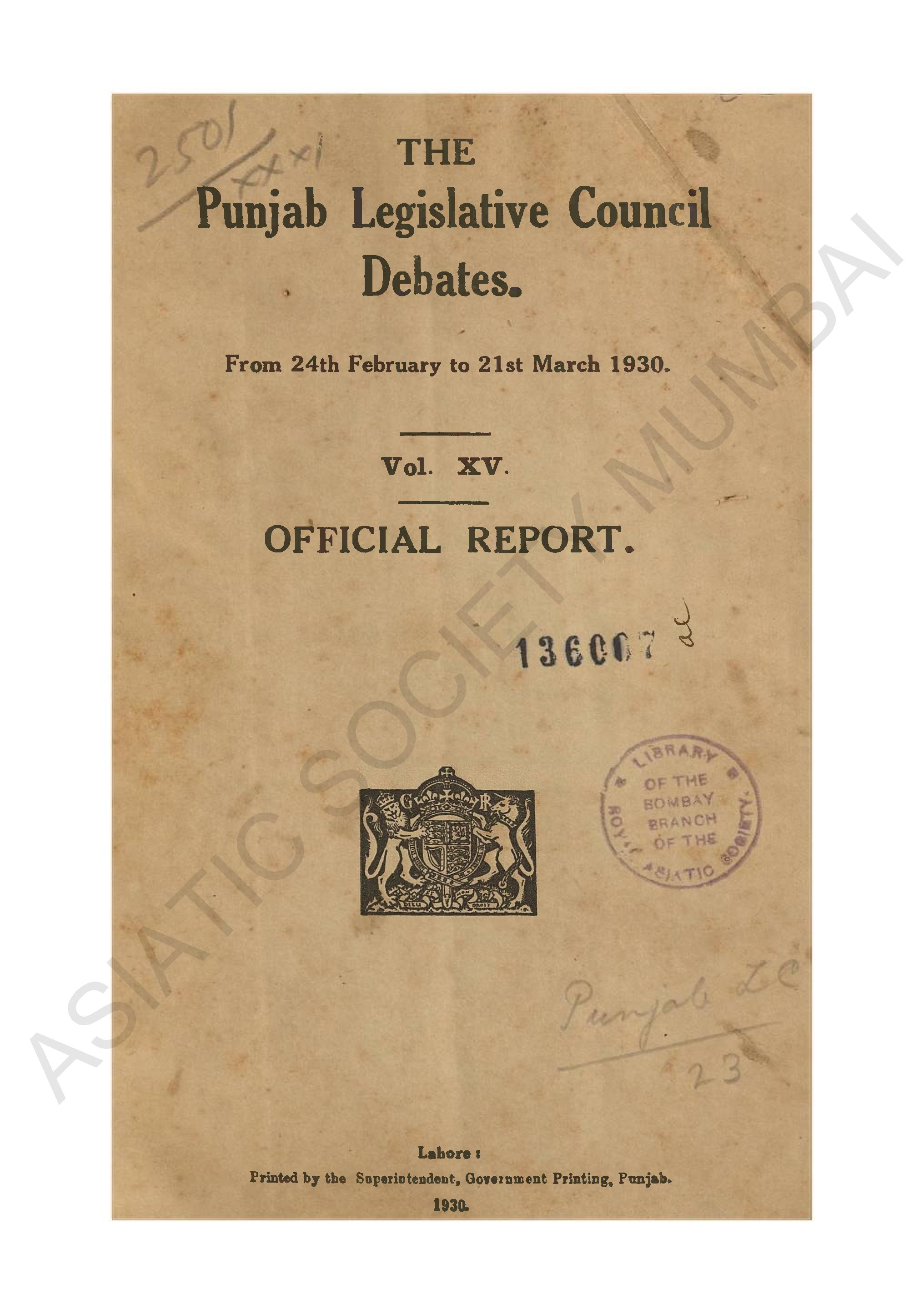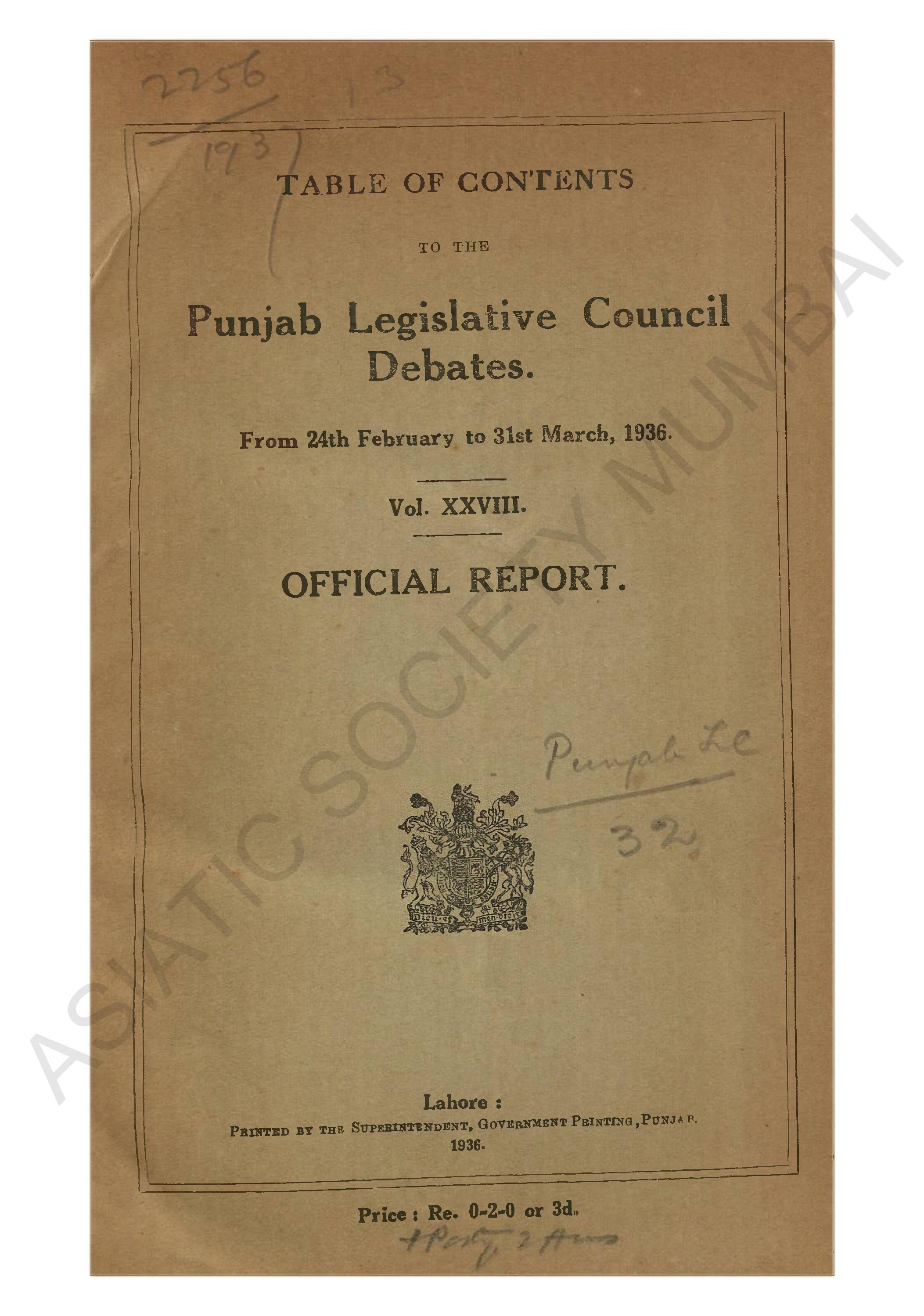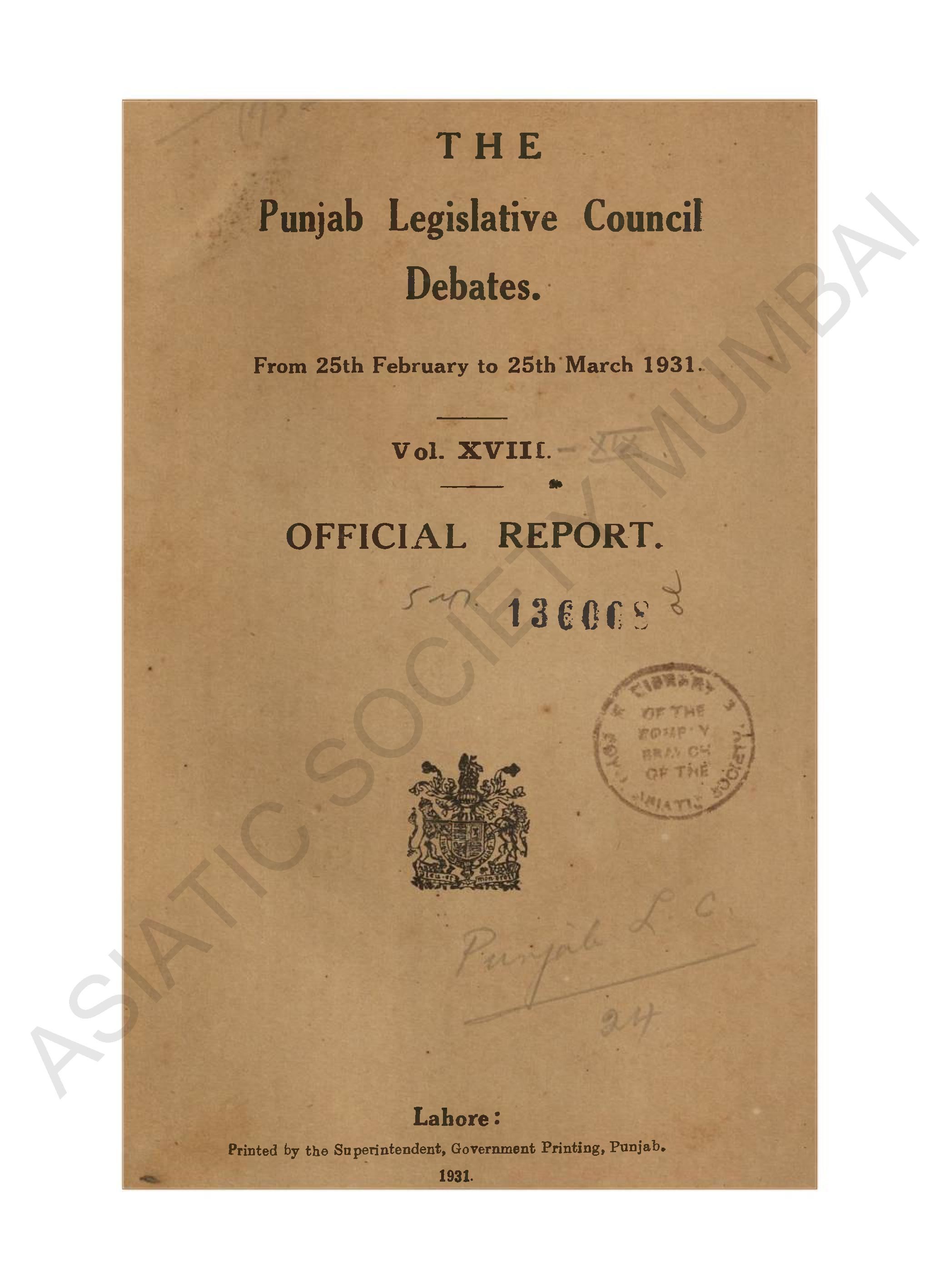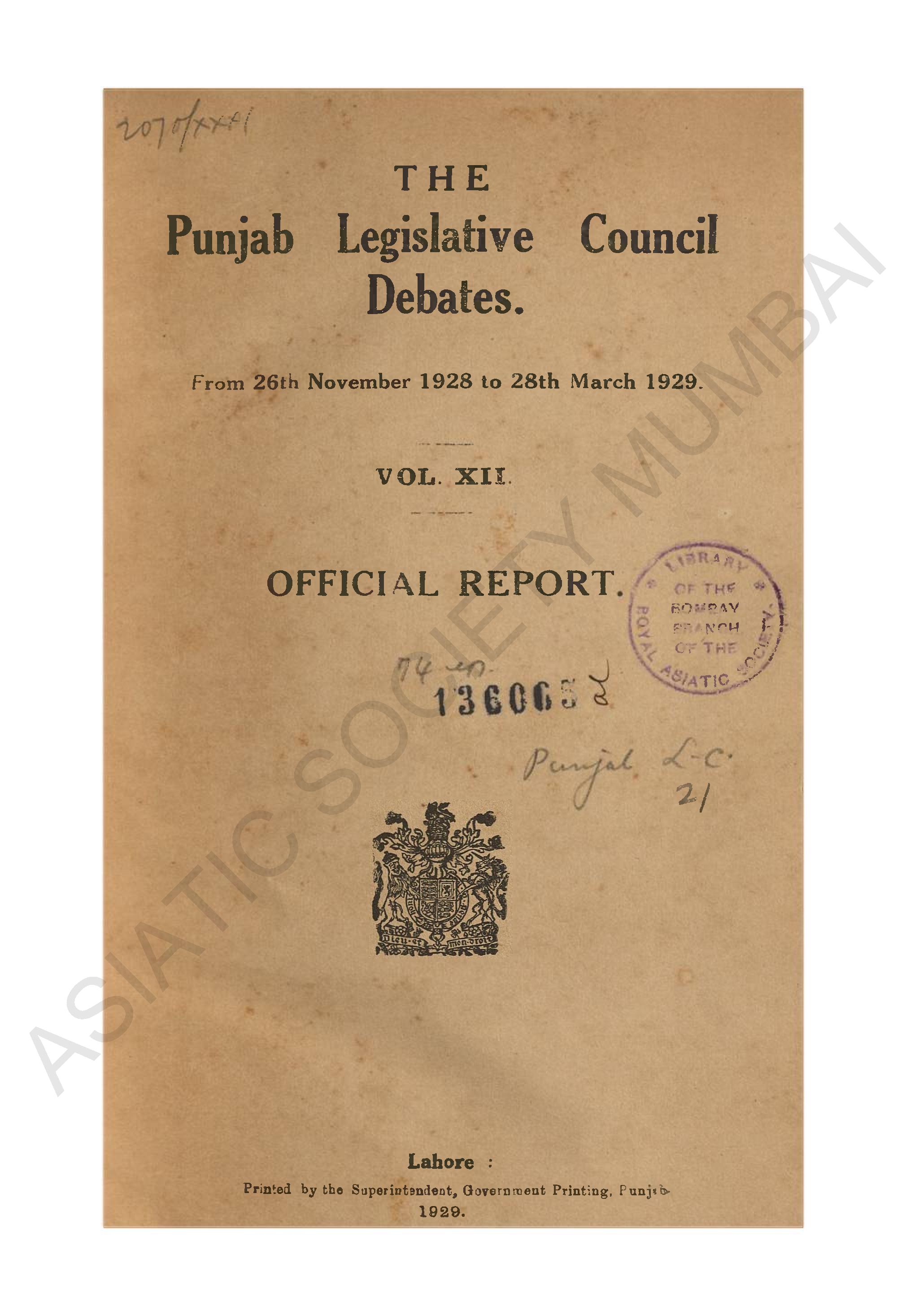 | Subject | : | India--Punjab; Politics and government; Punjab (India). Legislature. Legislative Council |