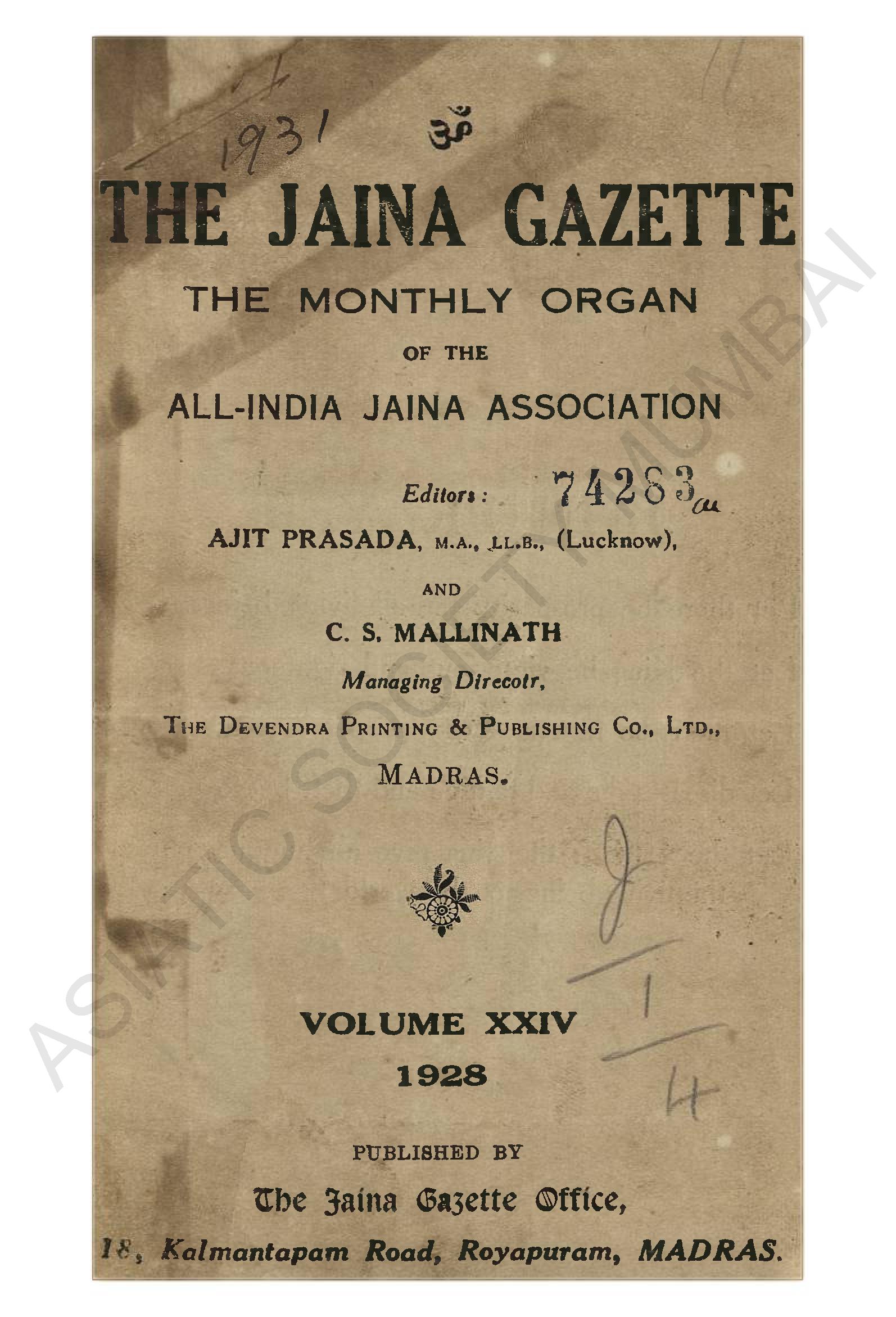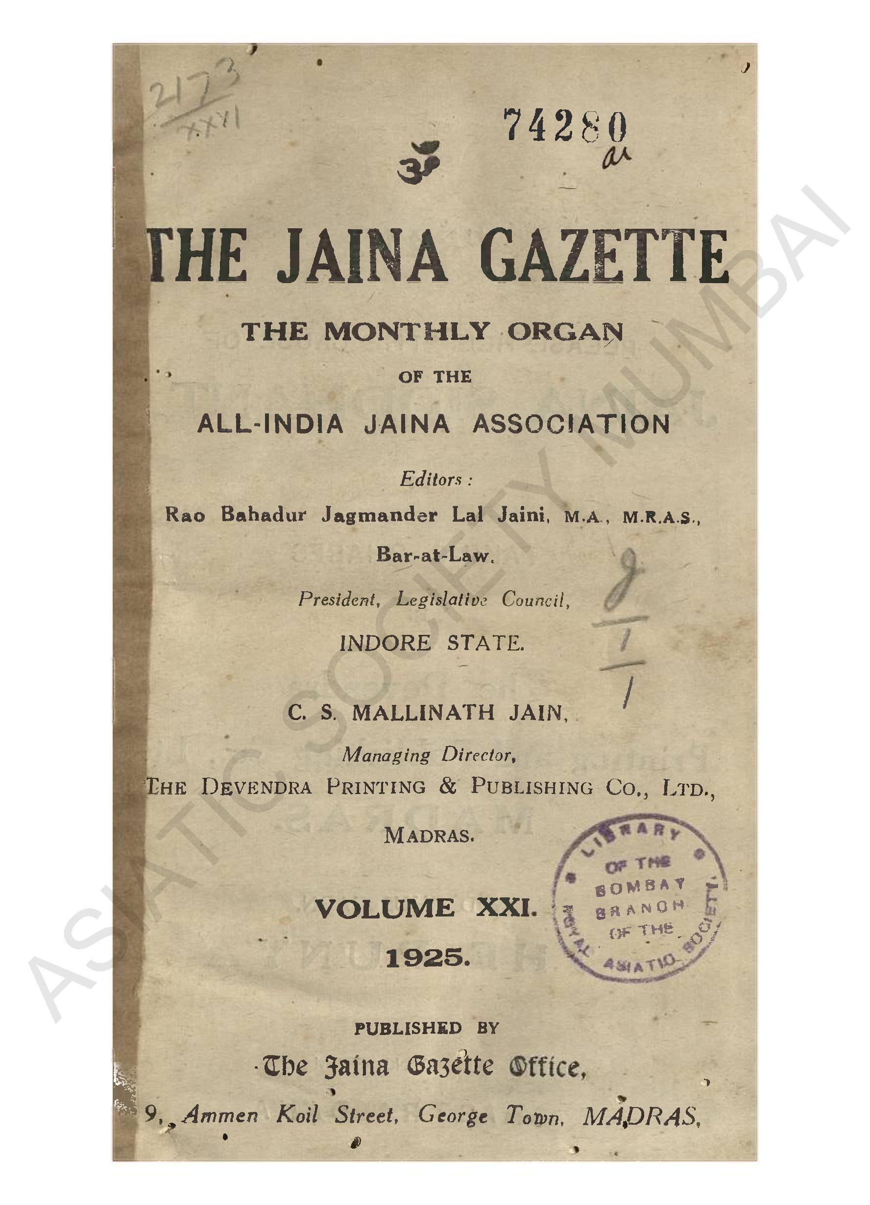| Publisher | : | The Jaina Gazette office |