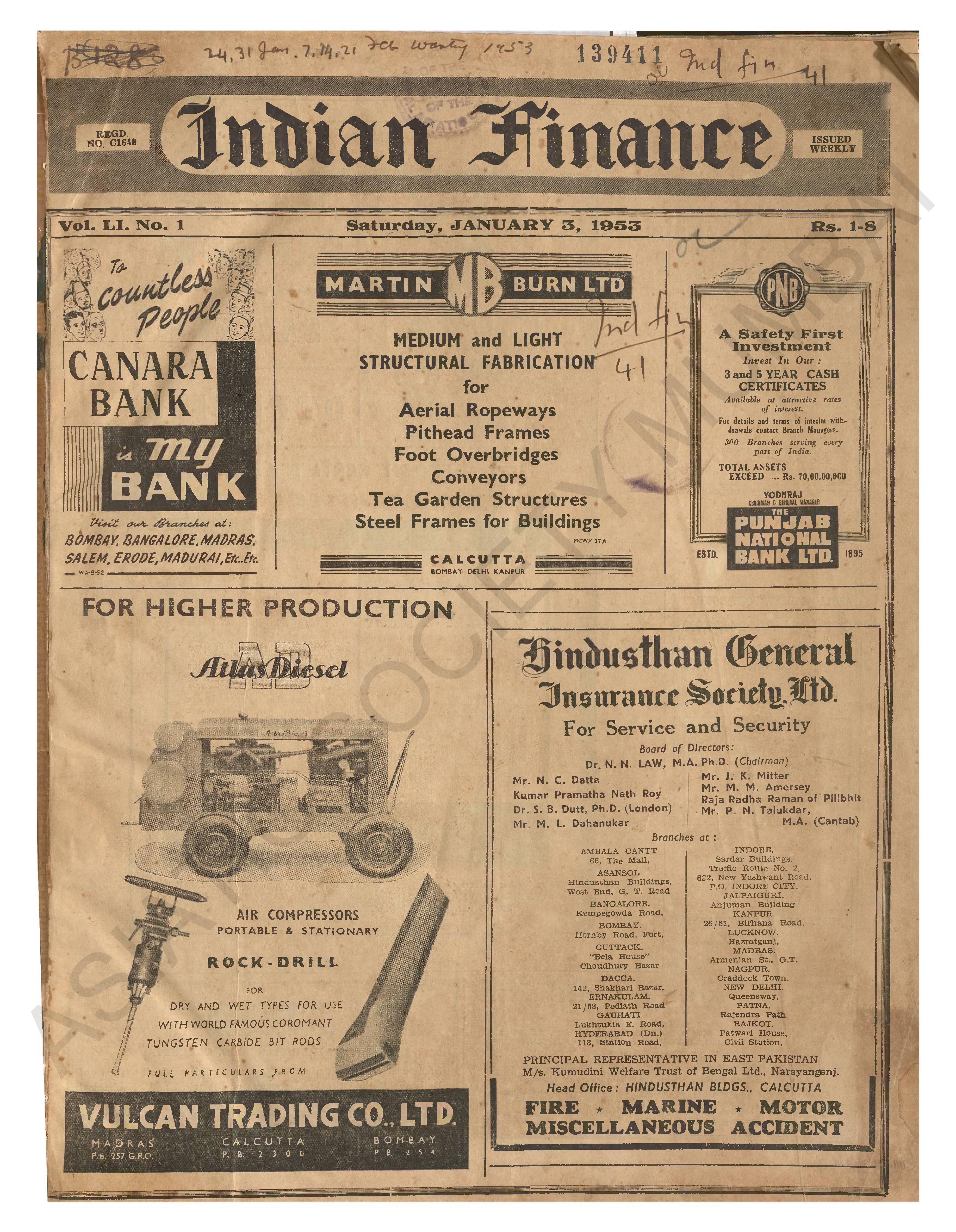 Indian Finance Issued Weekly. Vol. LI, January 3, 1953.