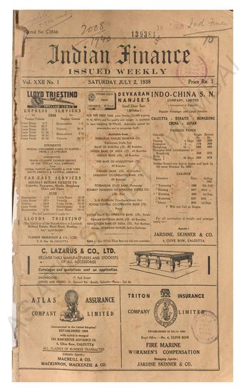 Indian Finance Issued Weekly, Vol. XXII, July 2, 1938.