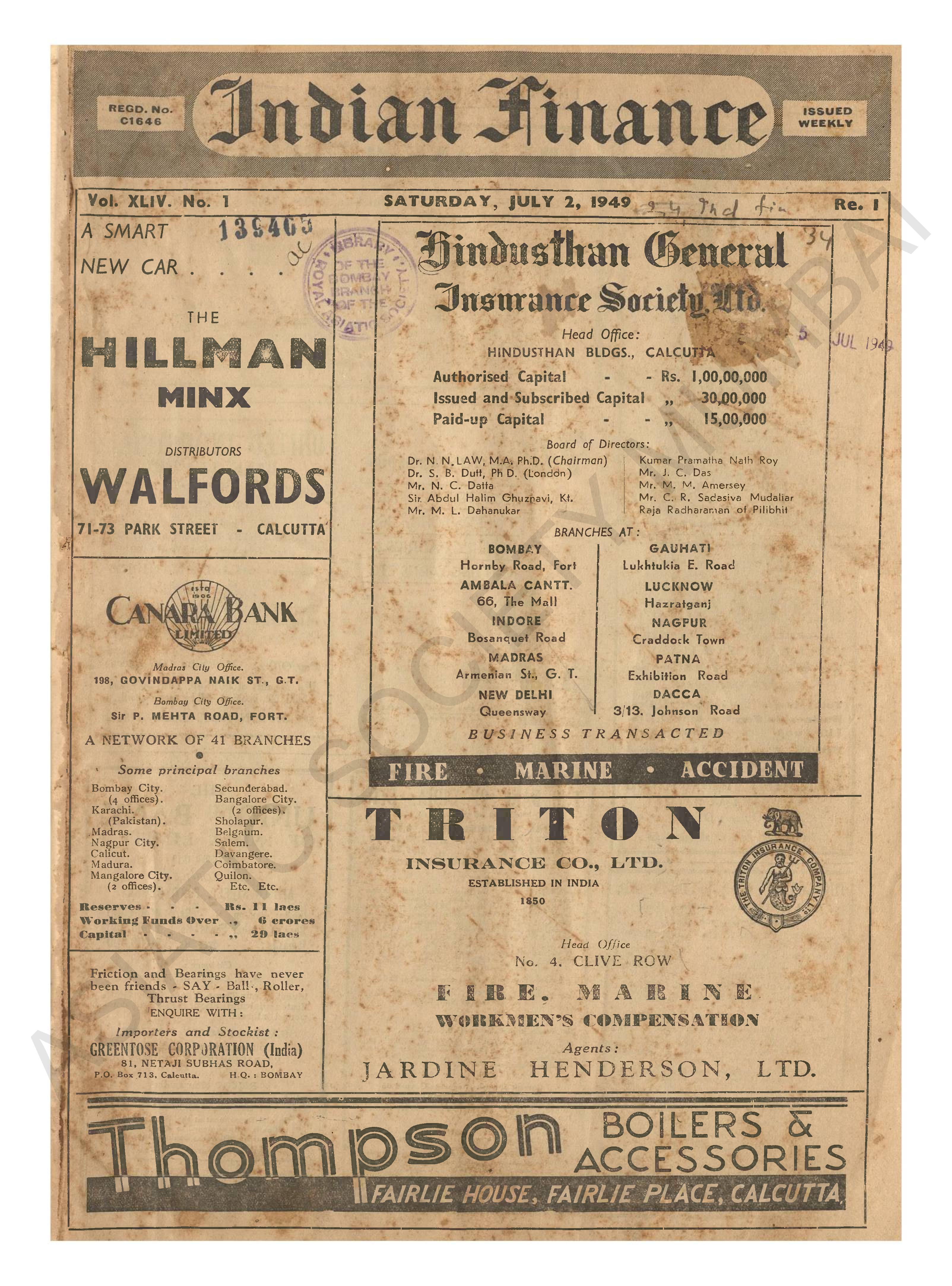 Indian Finance Issued Weekly. Vol. XLIV, July 2, 1949.