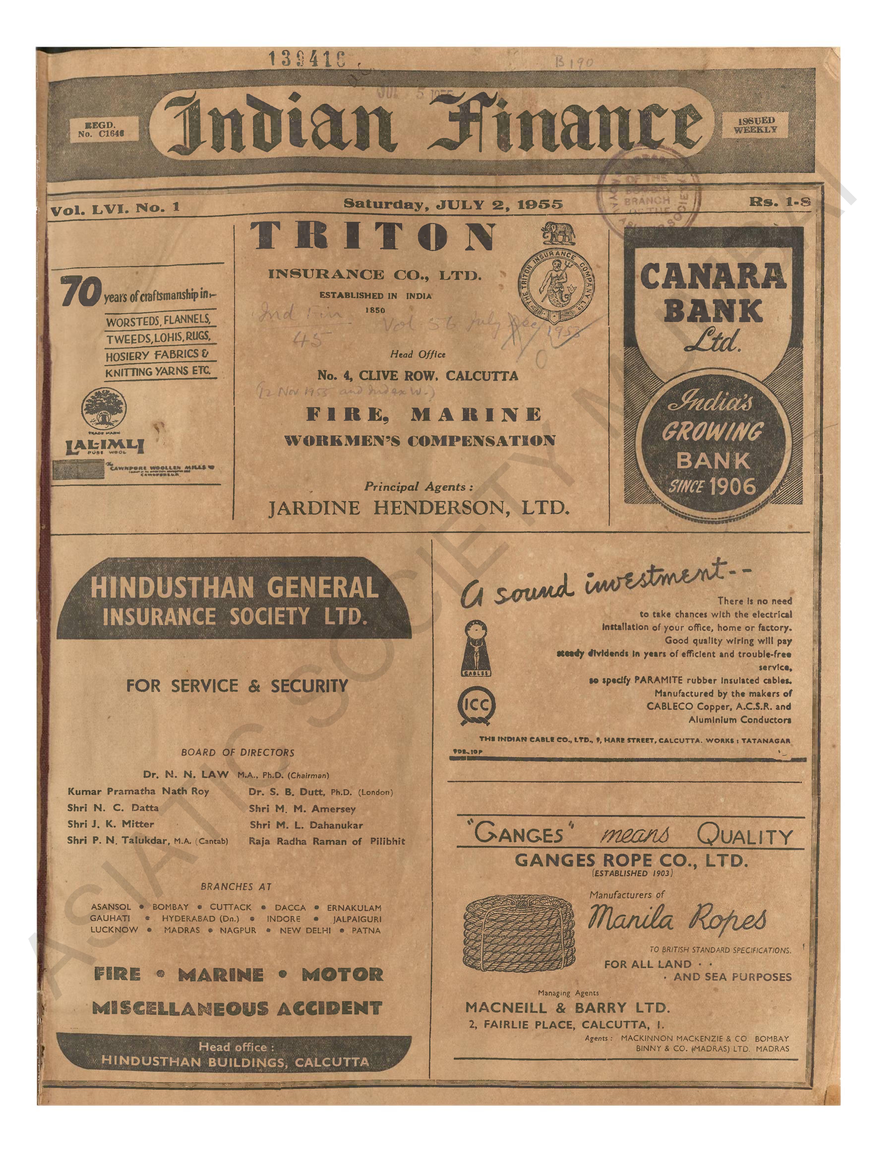 Indian Finance Issued Weekly. Vol. LVI, July 2, 1955.
