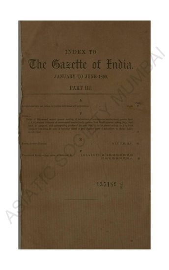 Index to The Gazette of India, January to June 1890. Pa ...