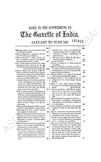 Index to Extra Supplements to the Gazette of India, Jan ...