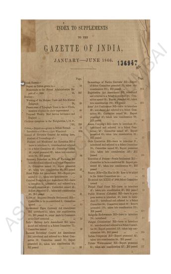 Index to Supplements to the Gazette of India, January to June, 1876…