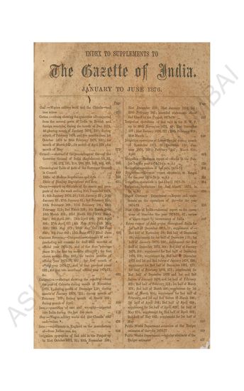 Index to the Gazette of India, January to June, 1876 Pa ...