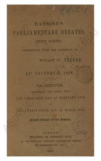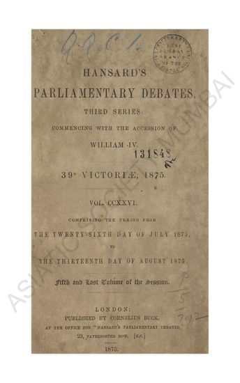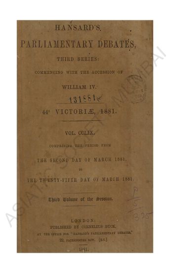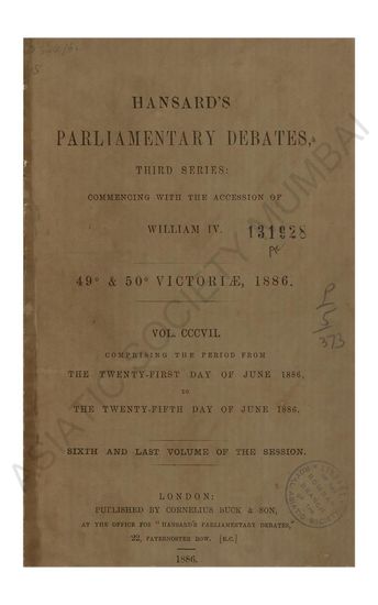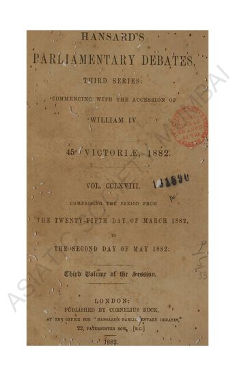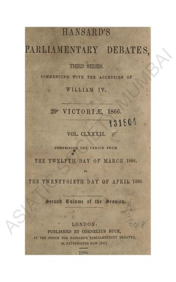 Hansard's Parliamentary Debates third series commenig with the accession of William IV 25 Victore 1862 Vol CLXVI comprising the perid from the Twenty-Fifth day of March 1862 to the Twenty-Sixth day of May 1862 Second volume of the session.