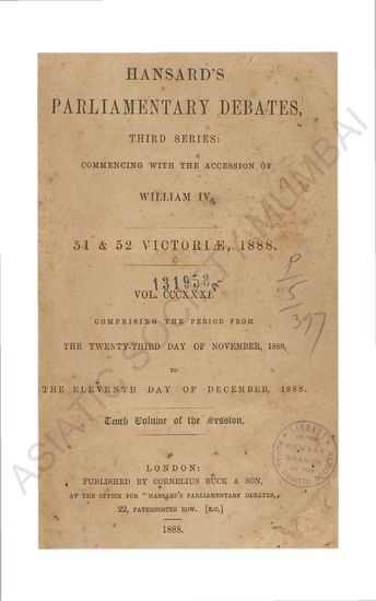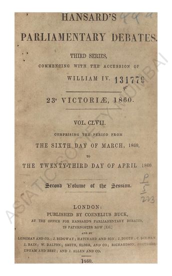Hansard's Parliamentary Debates third series commenig with the accession of William IV 32 Victore 1868-9 Vol CXCIV comprising the perid from the Tenth day of December 1868 to the Twenty-Third day of March 1869 First volume of the session.