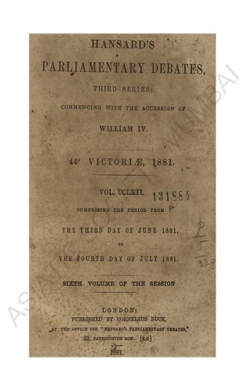 Hansard's Parliamentary Debates third series commenig with the accession of William IV 44 Victore 1881 Vol CCLX comprising the perid from the Twenty-Sixth day of March 1881 to the Sixth day of March 1881 Fourth volume of the session.