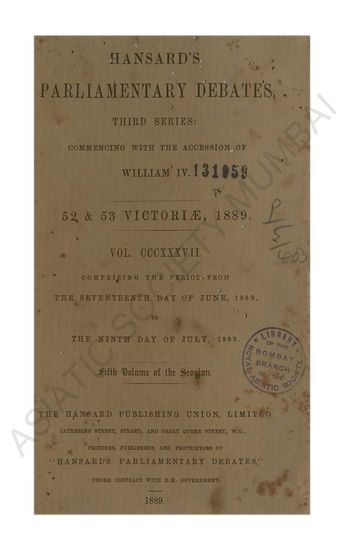 Hansard's Parliamentary Debates third series commenig with the accession of William IV 48 Victore 1884-5 Vol CCXCVII comprising the perid from the Seventeenth day of April 1885 to the Seventh day of May 1885 Fifth volume of the session 1884-5.