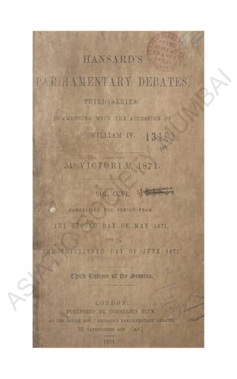 Hansard's Parliamentary Debates third series commenig with the accession of William IV 50 Victore 1887 Vol CCCXVI comprising the perid from the Sixteenth day of May 1887 to the Thirteenth day of June 1887 Sixth volume of the session.
