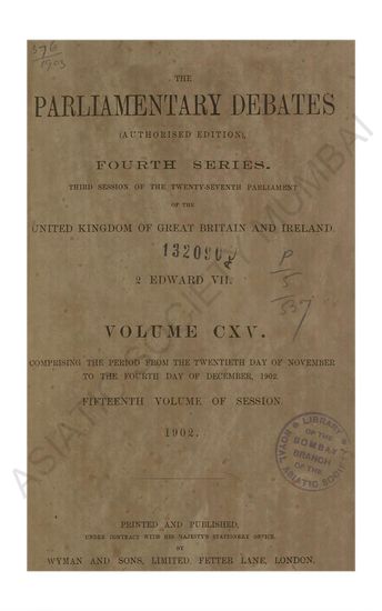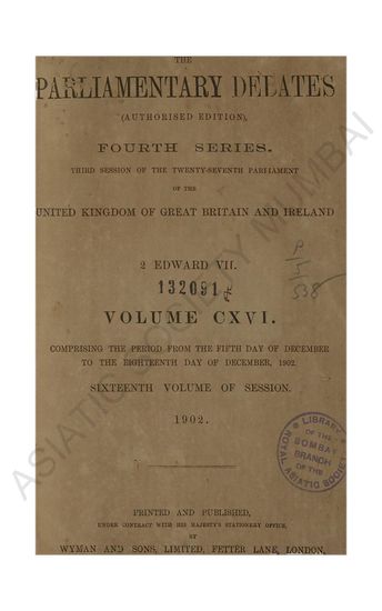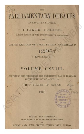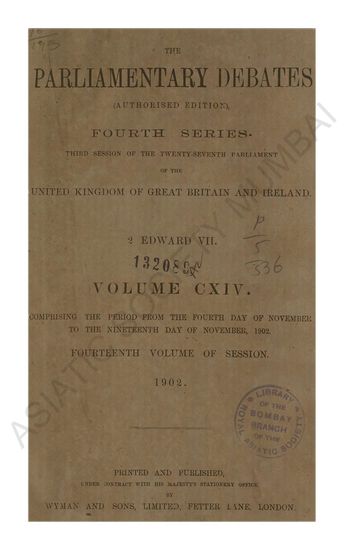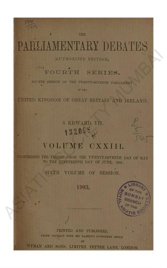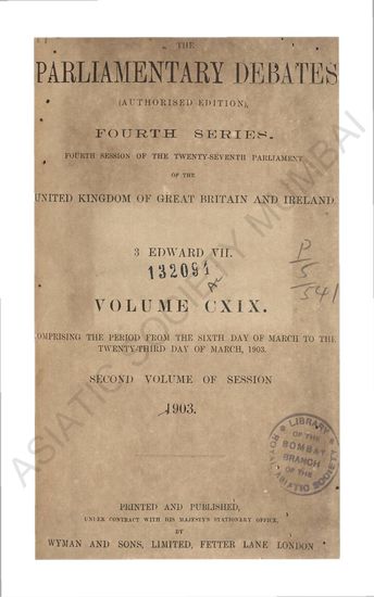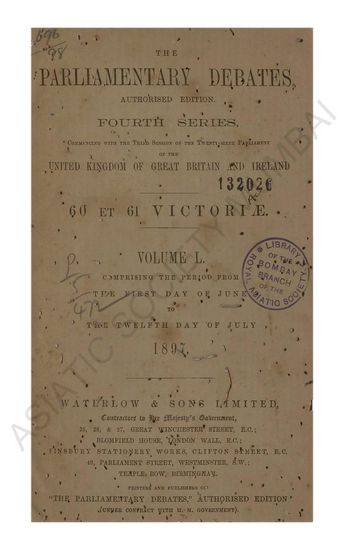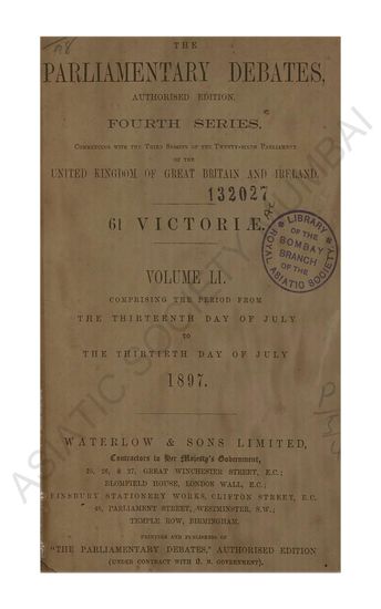 Parliamentary Debates authorised edition Fourth series commencing with the third session of the twenty-sixth parliament of the united kingdom of great britain and ireland 60 ET 61 Victory. Volume LI comprising the period from the Thirteenth day of July to the Thirtieth day of July 1897.