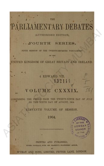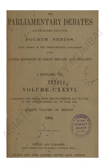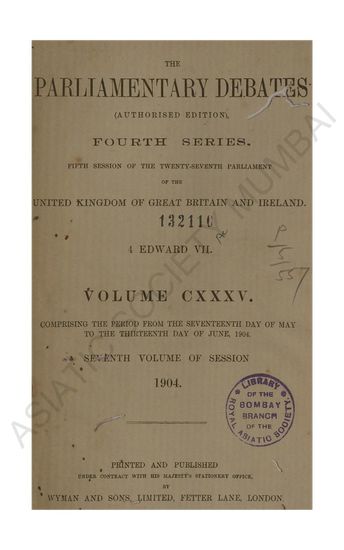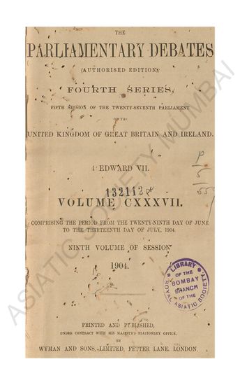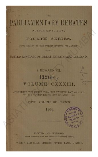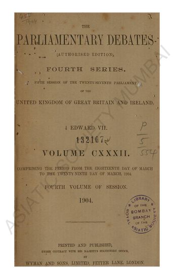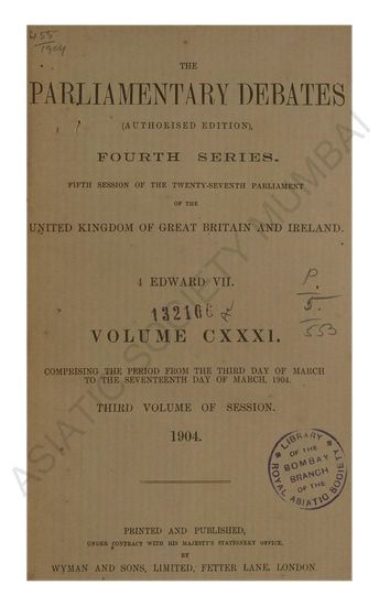 Parliamentary Debates authorised edition Fourth series fifth session of the twenty-seventh parliament of the united kingdom of great britain and ireland 4 Edward VII Volume CXXX comprising the period from the Seventeenth day of February to the Second day of March 1904 Second Volume of Session 1904.