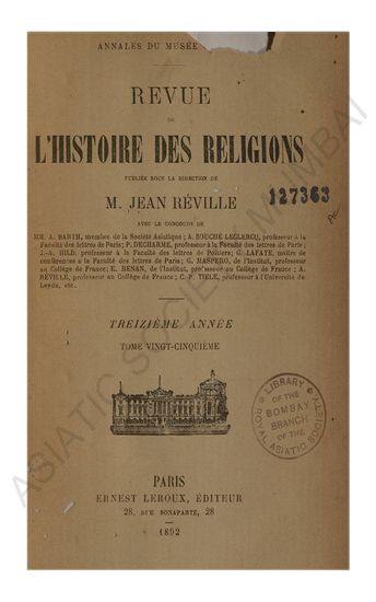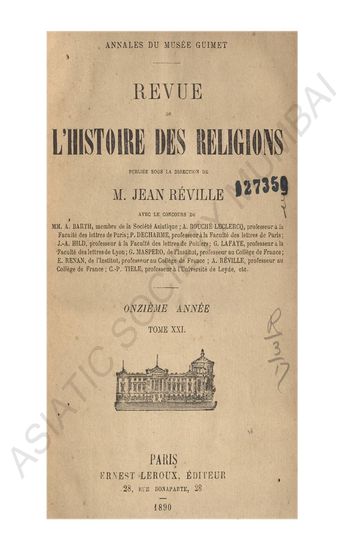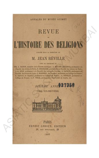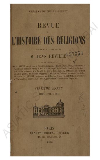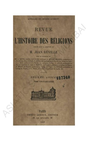Revue de L'histoire des religions MM.E. AMELINEAU, de I'Ecole des Hautes Etudes; A. AUDULLENT, maitre de confereuces a la faculte des letters de Clermont-Ferrand; A. BARTH, de I'Institut; A. BOUCHC-LECLERCQ, professeur a la Faculte des letters de Paris; P. DECHARME, professeur a la Faculte des letters de Paris; I. GOLDZIHER, professeur a I' Universite de Budapast; J-A. HILD,professeur a la Faculte des letters de poitiers; G. LAFAYE maitre de conferences a la faculte des letters de Paris; L. MARILLIER, de I'Ecole des Hautes Etudes; G. MASPERO, de I'Institut, professeur au College de France; P. PARIS,professeur A LA Faculte des letters de Bordeaux; ALBERT REVILLIE, professeur au College de France; C-P. TITLE, professeur a I'universite de Leyde, etc..