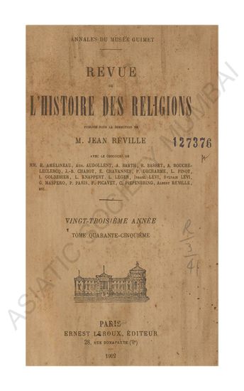| Publisher | : | MM. Jean Reville et leon marillier |