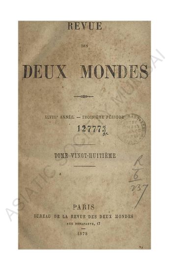| Publisher | : | Bureau, De La Revue des deux mondes |