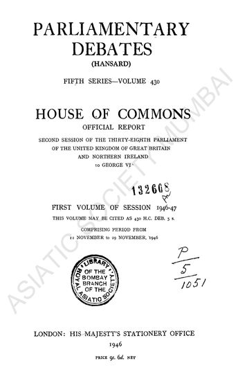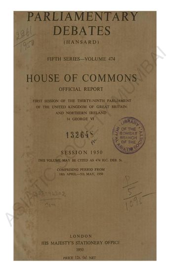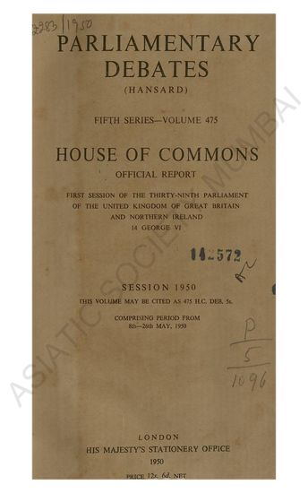Parliamentary Debates Fifth Series-Volume 476 House of Commons Official Report First Session of the Thirty-Eighth Parliament of the United Kingdom of great britain and northern ireland 14 George VI Session 1950..