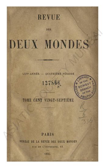 | Publisher | : | Bureau de la Revue des Deux Mondes, Rue de l'Université, 15 |