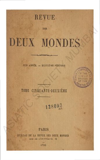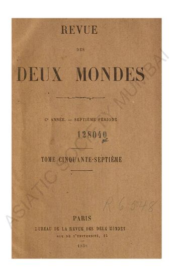 | Publisher | : | Bureau de la Revue des Deux Mondes, Rue de l'Université, 15 |
