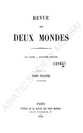 | Publisher | : | Bureau de la Revue des Deux Mondes, Rue de l'Université, 15 |