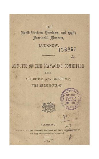 | Subject | : | Minutes of the Managing Committee; North-Western Provinces and Oudh Provincial Museum |