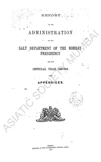 Bombay Presidency (India, British). Salt Departme et al.