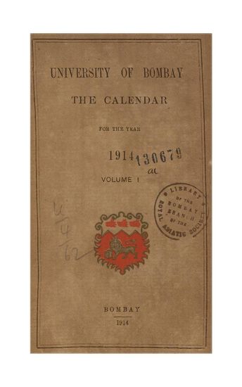 University of Bombay Calendar for Year 1914, Volume I.
