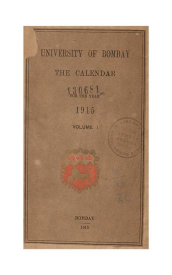 University of Bombay Calendar for Year 1915, Volume I.