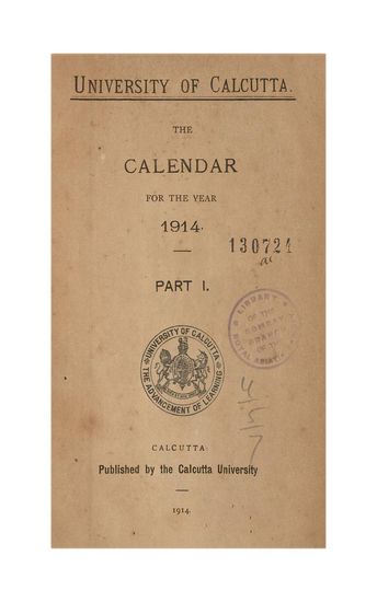 University of Calcutta. Calendar for Year 1914-Part I.