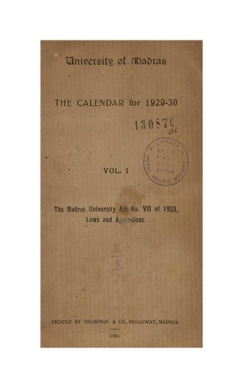 University of Madras the Calendar for 1928-1929, Vol. I ...