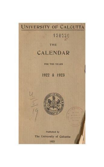 University of Calcutta the Calendar for years 1922 & 19 ...