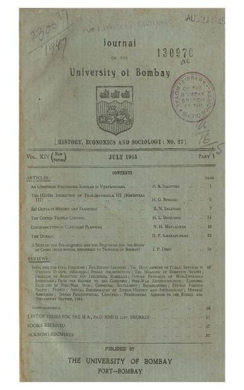 | Subject | : | William Harborne: our first ambassador to the Sultan (1552-1617) ; Ovington s account of life on Bombay island 240 years ago (A. D. 1690) ; A realistic school of Indian sculpture in the 16th century ; Raja Chait Sing of Benares under the Nawab of Oudh 1770-1775 ; The case for trade unions ; A study of Indo-American trade since 1875 ; Agricultural holdings in India ; The place of India in international commerce ; Hindu sculpture ; The Parsasurama myth ; Nature and sphere of the ancient Indian state ; The League of Nations and the future of civilisation |