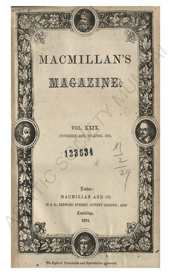 Macmillans Magazine. Vol. XXIX. November, 1873, -April, ...
