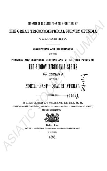| Subject | : | General Description of the Principal Triangulation of the North-East Quadrilateral including the Simultaneous Reduction and the Details of Five of the Component Series |