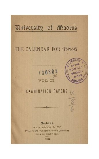 | Publisher | : | Addison & Co., Printers and Publishers to the University |