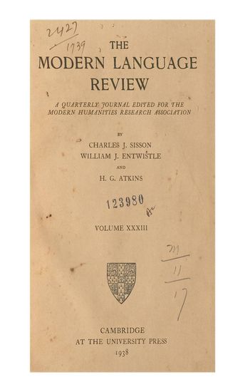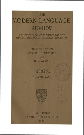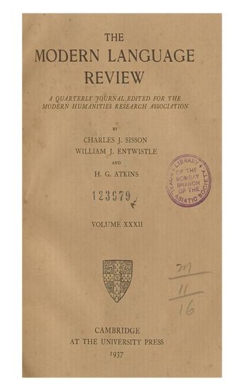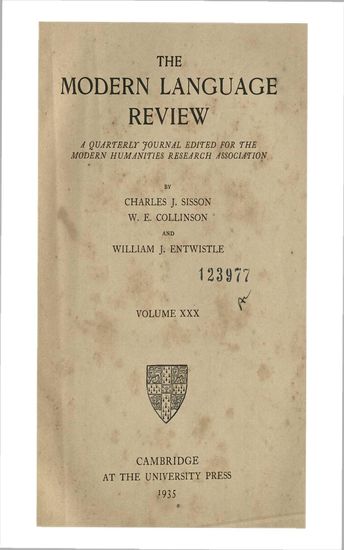 | Subject | : | A quarterly journal edited for the Modern Humanities Research Association |