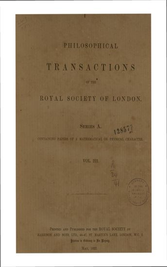 | Subject | : | Containing Papers of a Mathematical and Physical Character |