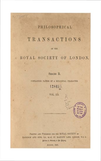 | Publisher | : | Printed and published for the Royal Society by Harrison and Sons, Ltd. |