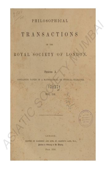 | Subject | : | Containing Papers of a Mathematical and Physical Character |