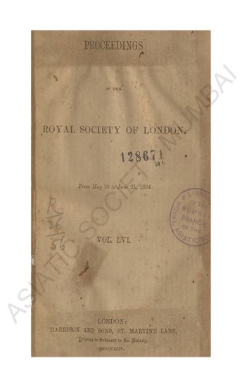 | Subject | : | Scientific Proceedings of the Royal Society of London |