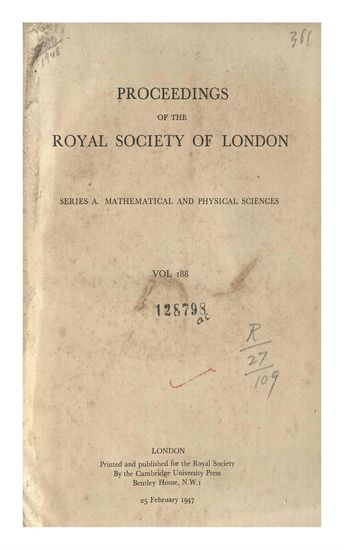 | Subject | : | Series A-Mathematical and Physical Sciences |