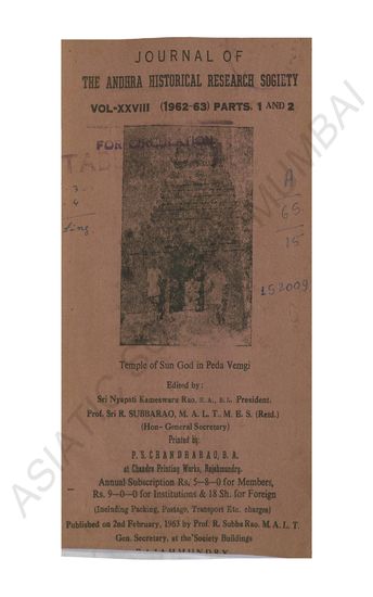 Journal. of the Andhra Historical Research Society Vol ...