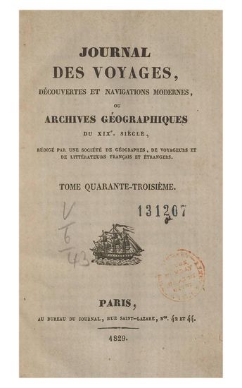 | Subject | : | Voyages; Discoveries; and Modern Navigations; Geographical Archives of the 19th Century of the 19th Century |