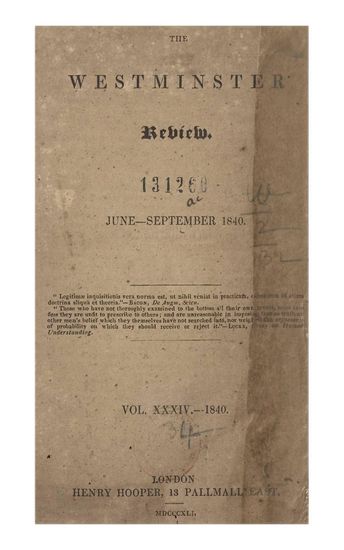 Westminster Review. Volume XXXIV, June - September 1840 ...