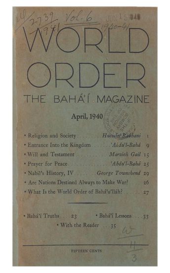 World Order, Bahá'í Magazine, Vol. 6, April 1940.