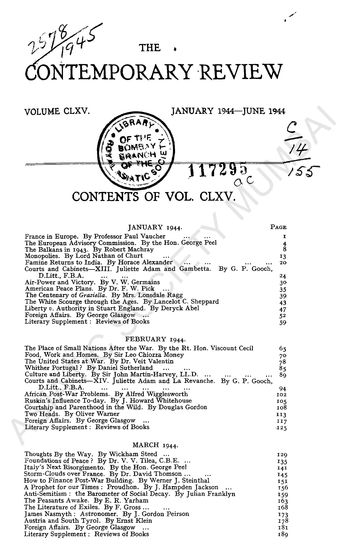 Contemporary Review, January 1944- June 1944, Vol CLXV.