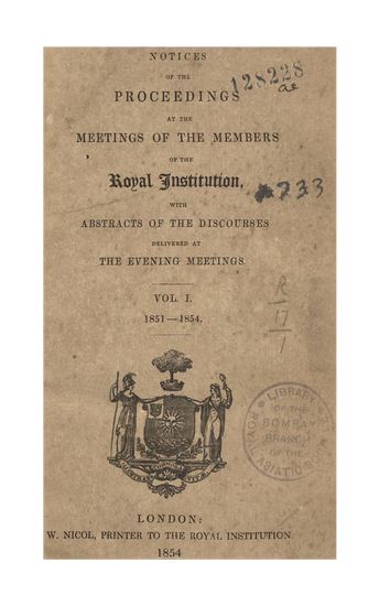 | Subject | : | Proceedings and discourses at the Royal Institution of Great Britain meetings |