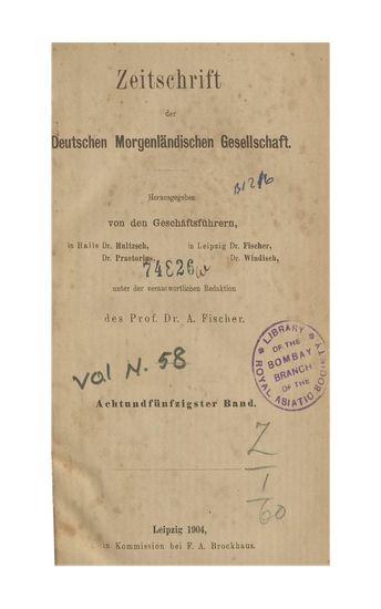 | Subject | : | Zeitschrift der Deutschen Morgenländischen Gesellschaft |